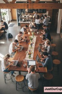 Tiếng máy pha cà phê rì rầm, mùi hương nồng nàn lan tỏa tạo nên một bầu không khí năng động. Bạn có thể dễ dàng bắt gặp những người chung lý tưởng, cùng nhau chia sẻ những câu chuyện khởi nghiệp. Sự kết nối cộng đồng chính là giá trị vô hình mà chúng mình luôn tự hào xây dựng.